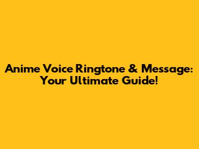Anime Voice Ringtone & Message: Your Ultimate Guide!