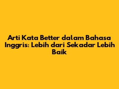 Arti Kata Better Dalam Bahasa Inggris