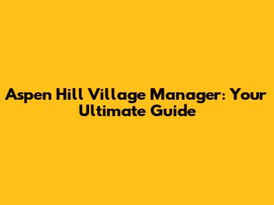 Aspen Hill Village Manager: A Comprehensive Guide
