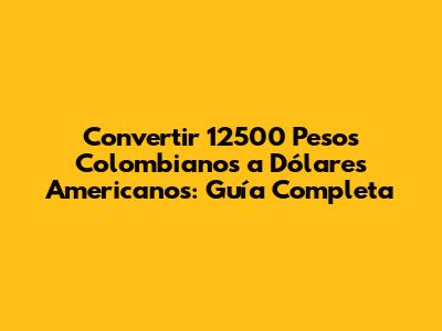Convertir 12500 Pesos Colombianos A Dólares Americanos