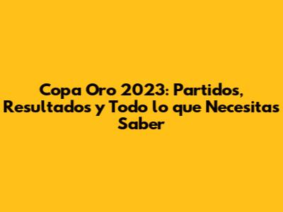 Copa Oro 2023: Partidos, Resultados Y Todo Lo Que Necesitas Saber