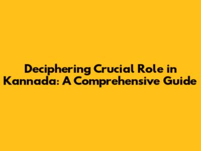 Deciphering 'Crucial Role' In Kannada: A Comprehensive Guide