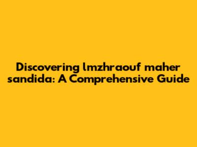 Discover Lmzhraouf Maher Sandida: A Comprehensive Guide