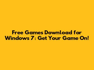Free Games Download For Windows 7: Get Your Game On!