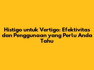 Penting untuk diingat: Histigo hanya efektif untuk jenis vertigo tertentu, terutama yang disebabkan oleh masalah pada telinga bagian dalam. Jika vertigo Anda disebabkan oleh faktor lain, seperti migrain atau masalah otak, Histigo mungkin tidak memberikan efek yang signifikan. Selalu konsultasikan dengan dokter untuk mendapatkan saran medis yang tepat.