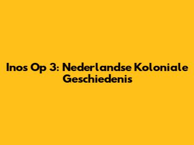 Inos Op 3: Nederlandse Koloniale Geschiedenis