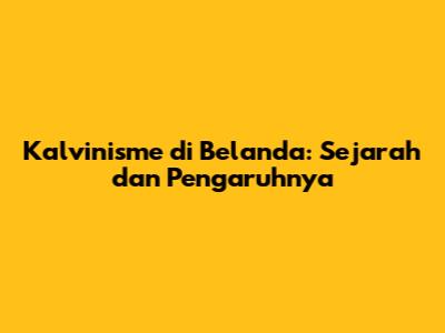 Kalvinisme Di Belanda: Sejarah Dan Pengaruhnya