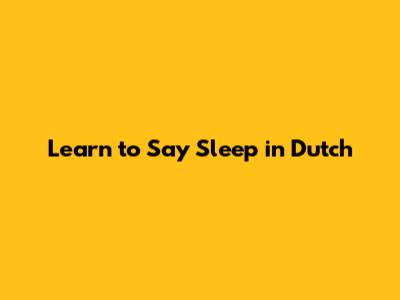 Learn To Say 'Sleep' In Dutch
