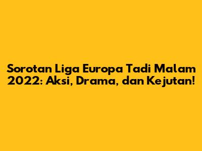 Liga Europa 2022 telah menyajikan sejumlah pertandingan menarik yang patut untuk disorot. Buat kalian para penggemar sepak bola, khususnya yang mengikuti perkembangan Liga Europa, pasti penasaran kan dengan hasil pertandingan semalam? Nah, jangan khawatir, karena kita akan membahas sorotan Liga Europa tadi malam 2022 secara lengkap, mulai dari gol-gol indah, aksi-aksi menegangkan, hingga kejutan-kejutan yang terjadi di lapangan. Mari kita bedah satu per satu!
