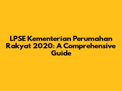 LPSE Kementerian Perumahan Rakyat 2020: A Comprehensive Guide