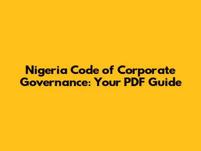 Nigeria Code Of Corporate Governance: Your PDF Guide
