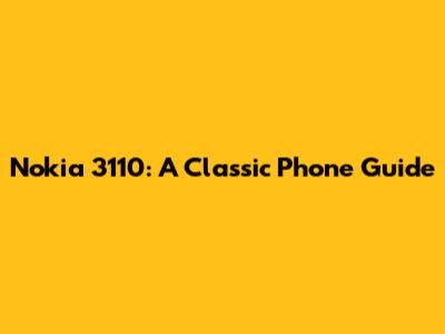 Nokia 3110: Classic Phone Guide