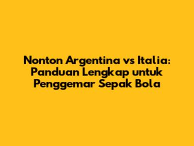 Argentina vs Italia: Pertandingan seru yang sangat dinantikan oleh para penggemar sepak bola di seluruh dunia. Bagi kalian yang penasaran, di channel mana Argentina vs Italia bisa ditonton, serta bagaimana cara menikmati pertandingan ini, mari kita simak panduan lengkapnya berikut ini. Jangan sampai ketinggalan aksi Lionel Messi dan kawan-kawan melawan kekuatan Italia!