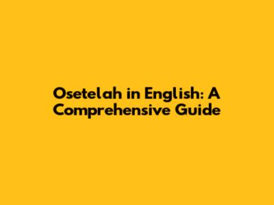 Osetelah In English: A Comprehensive Guide