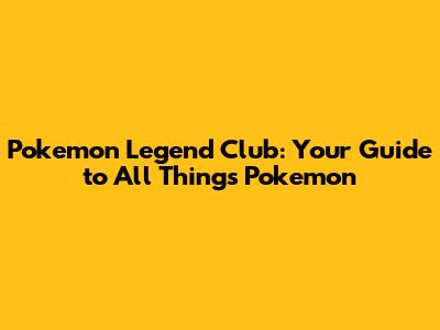 Pokemon Legend Club: Your Guide To All Things Pokemon