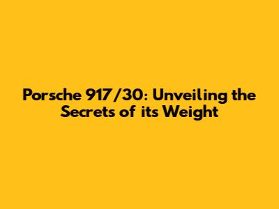 Porsche 917/30: Unveiling The Secrets Of Its Weight
