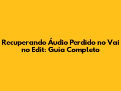Recuperando Áudio Perdido No Vai No Edit: Guia Completo