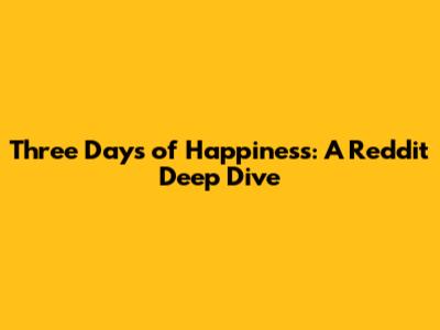 Three Days Of Happiness: A Reddit Deep Dive