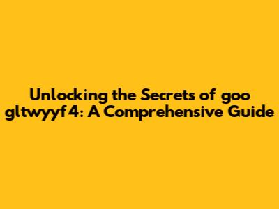 Unlocking The Secrets Of Goo Gltwyyf4: A Comprehensive Guide