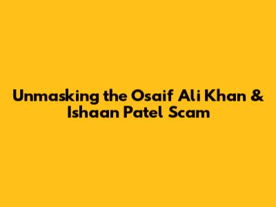 Unmasking The Osaif Ali Khan & Ishaan Patel Scam