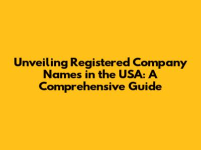 Unveiling Registered Company Names In The USA: A Comprehensive Guide