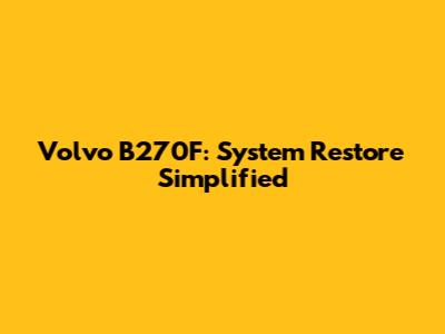 Hey guys! Ever found yourself in a situation where your Volvo B270F is acting up, and you're scratching your head, wondering how to fix it? Well, you're in the right place! Today, we're diving deep into the system restore process for the Volvo B270F. Think of this as your ultimate guide to getting your Volvo back on track. So, buckle up, and let’s get started!